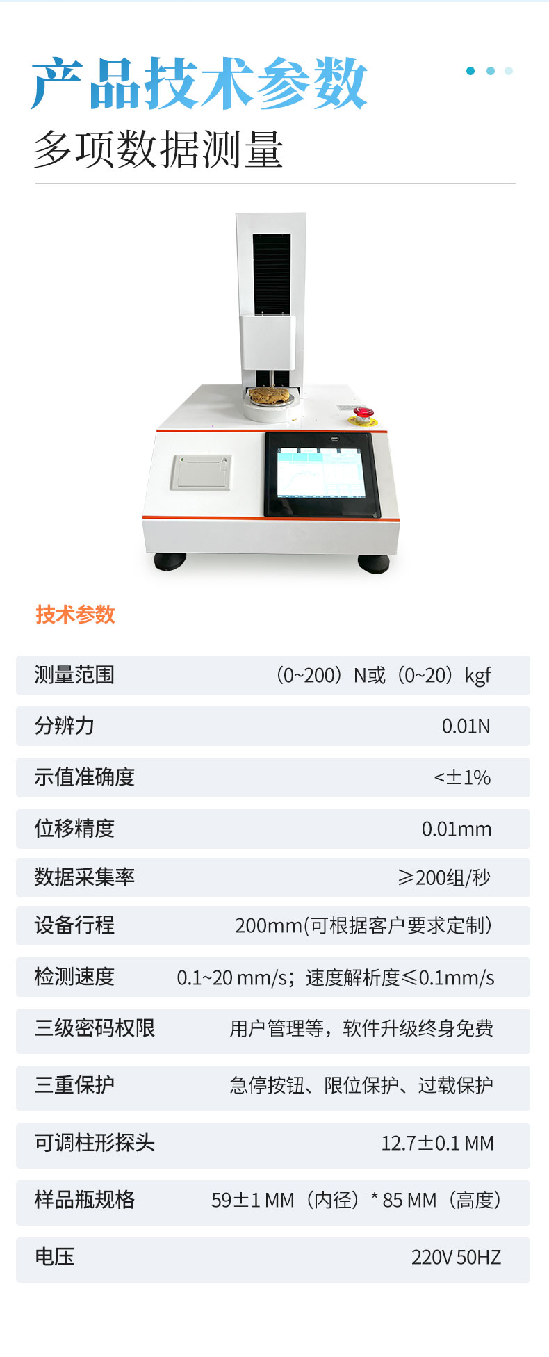 凝膠強度測儀適用于凝膠、果膠、硅膠、結(jié)冷膠、卡拉膠、瓊脂、阿拉伯膠、黃原膠、魔芋膠和瓜爾膠等的破裂強度、彈性、延展性、拉伸強度、粘附度、回復(fù)性等測試。凝膠強度測儀也叫凍力強度儀 ,明膠凝凍強度測定儀,組織分析儀或凍力測試儀。