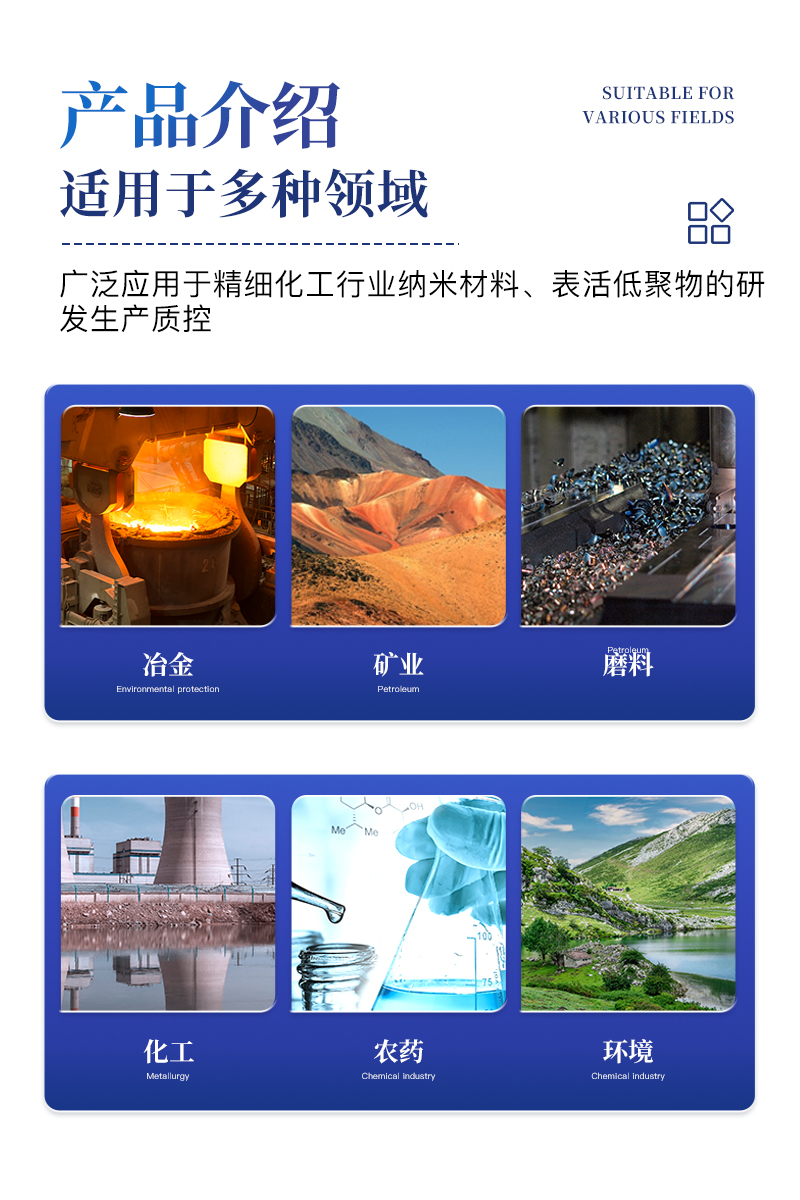 激光粒度分析儀同時(shí)具有Zeta電位及納米粒徑的分析測試功能,適用于多種不同的納米乳液、懸浮液膠體等的粒度和表面電位測量,能廣泛應(yīng)用于精細(xì)化工行業(yè)納米材料、表活、低聚物等的研發(fā)和生產(chǎn)質(zhì)控,同時(shí)也是油墨,醫(yī)藥制劑等行業(yè)產(chǎn)品研發(fā)及質(zhì)控檢測儀器。